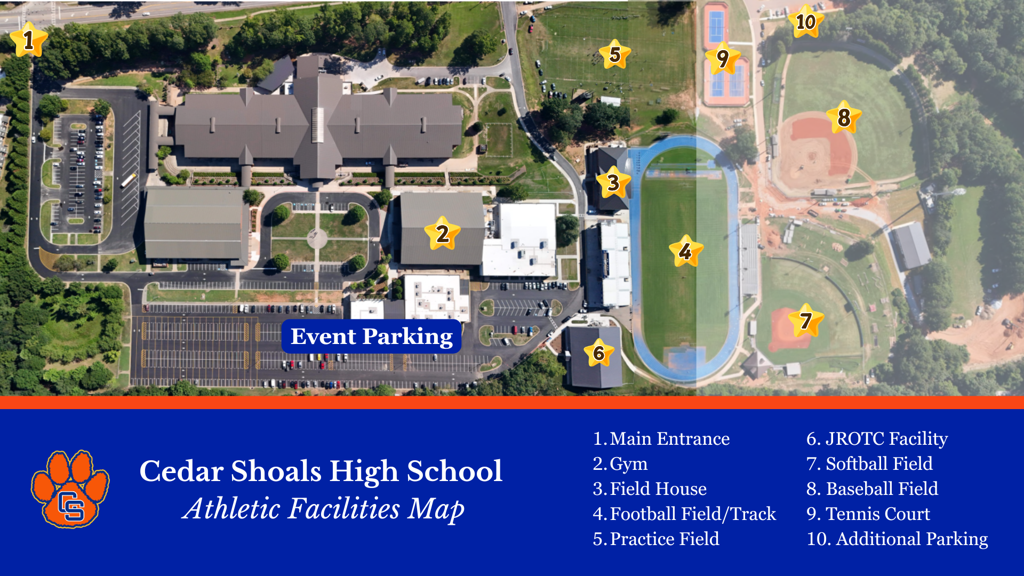 Stay connected here for the latest schedules, scores, athlete highlights, and announcements. We invite our families, alumni, and fans to join us in celebrating the accomplishments of our teams and continuing to move with purpose and pride at Cedar Shoals.